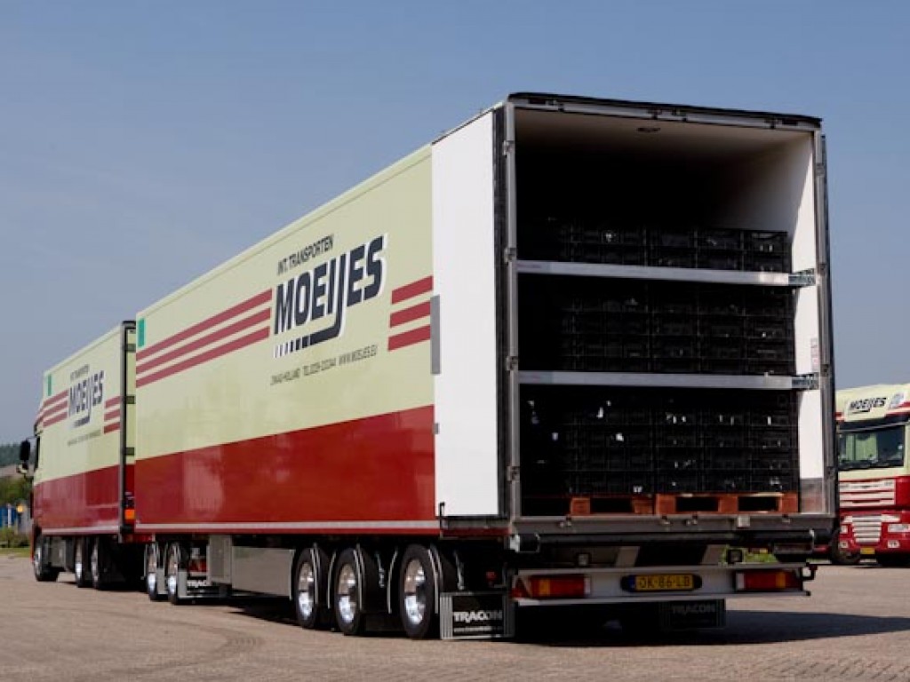 Der Volumentransport ist eine wichtige Spezialität von Moeijes. Der vollständig geschlossene Aufbau der Volumenkombinationen (110 m3) von Moeijes ist vor allem für den Transport von Elektronik geeignet.