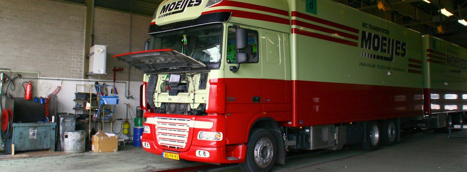 Moeijes Transport heeft al zijn materiaal in eigen onderhoud. In onze goed geoutilleerde werkplaats worden alle onderhoudswerkzaamheden "van voorbumper tot achterbumper" door onze goed opgeleide en ervaren onderhouds- en koelmonteurs uitgevoerd.